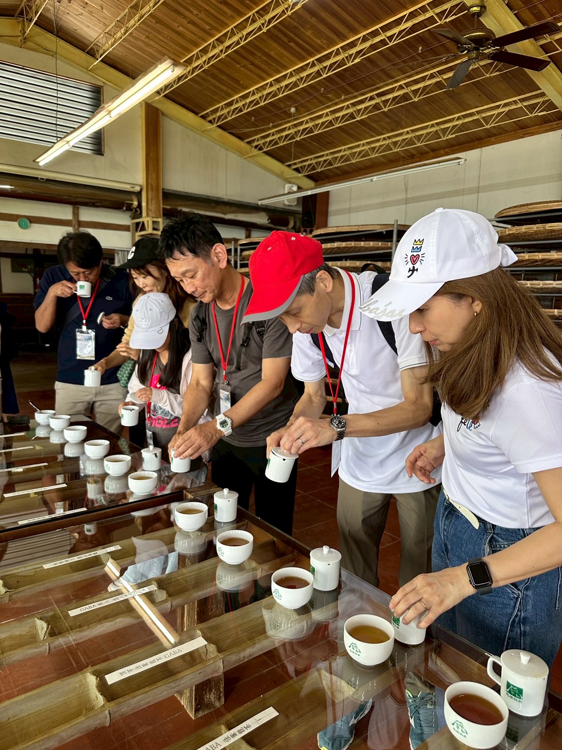 圖說:外籍從業人員於嘉義茶園體驗聞香品茗,認識台灣茶文化特色。(圖片來源/南科管理局提供)