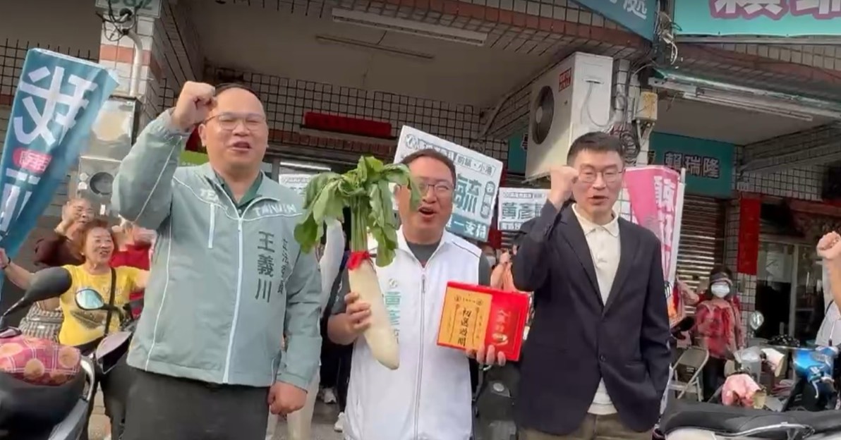高雄市議員初選民調倒數市議員黃彥毓1日舉行「兄弟相挺」掃街活動,特別邀請陸委會副主委梁文傑、立委王義川、沈伯洋三位黨內大將南下助陣。