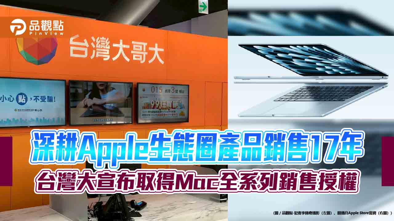 台灣大哥大今天發布重訊,揭露與Apple Asia LLC, Taiwan Branch 簽約,正式取得Apple Mac全系列產品(包含MacBook Air,MacBook Pro,Mac mini,Mac Studio,iMac,Mac Pro等)銷售授權。意味消費者將來到台灣大門市,也能購買Mac系列商品。